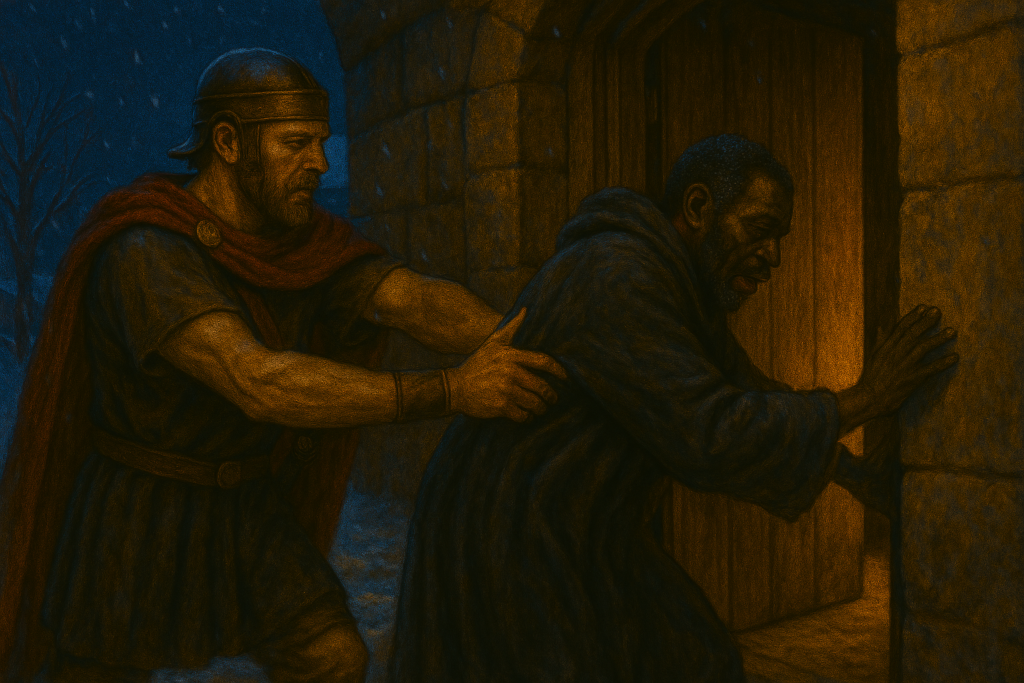 Gate opened, both sentries stared at him incomprehensibly. It was truly Oníṣe – gaunt, trembling as snowflakes clung to his eyelashes and hair.